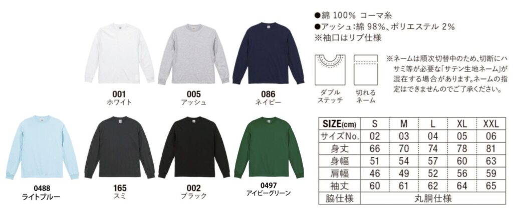 《ベース単価・製版・インク代 全て込みの税込み価格(XXL以上は別途)》