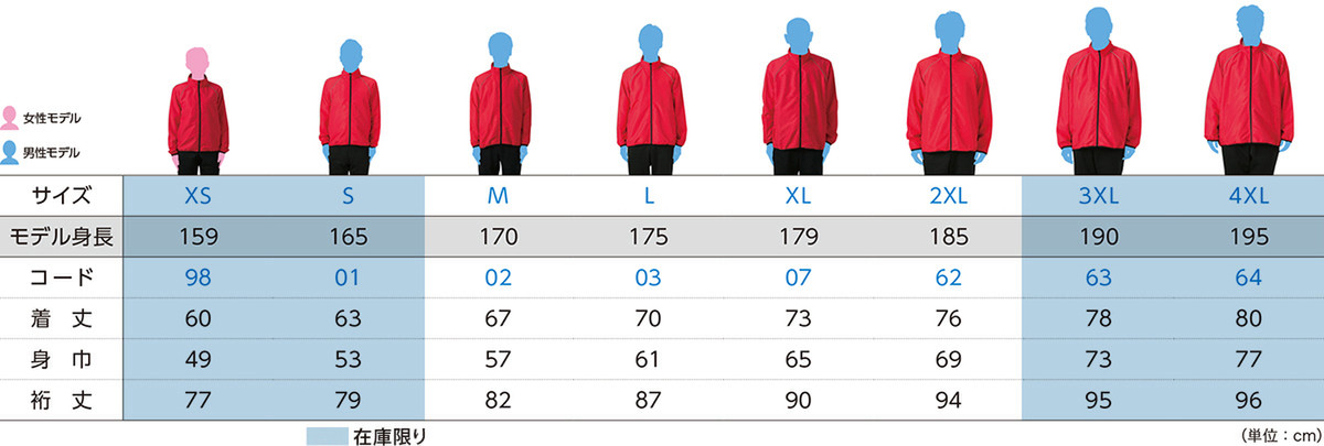サイズ:XS・S・M・L・XL・2XL(XXL)・3XL・4XL