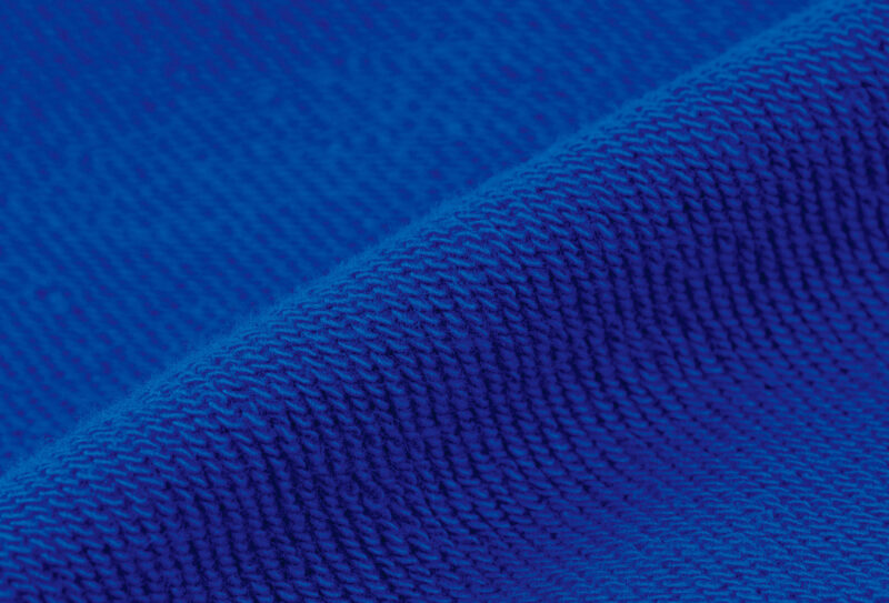 3種類の糸で編み、表地は平編み、裏はパイル状のスタンダードな生地。また、適度な厚みでロングシーズン着まわせます。