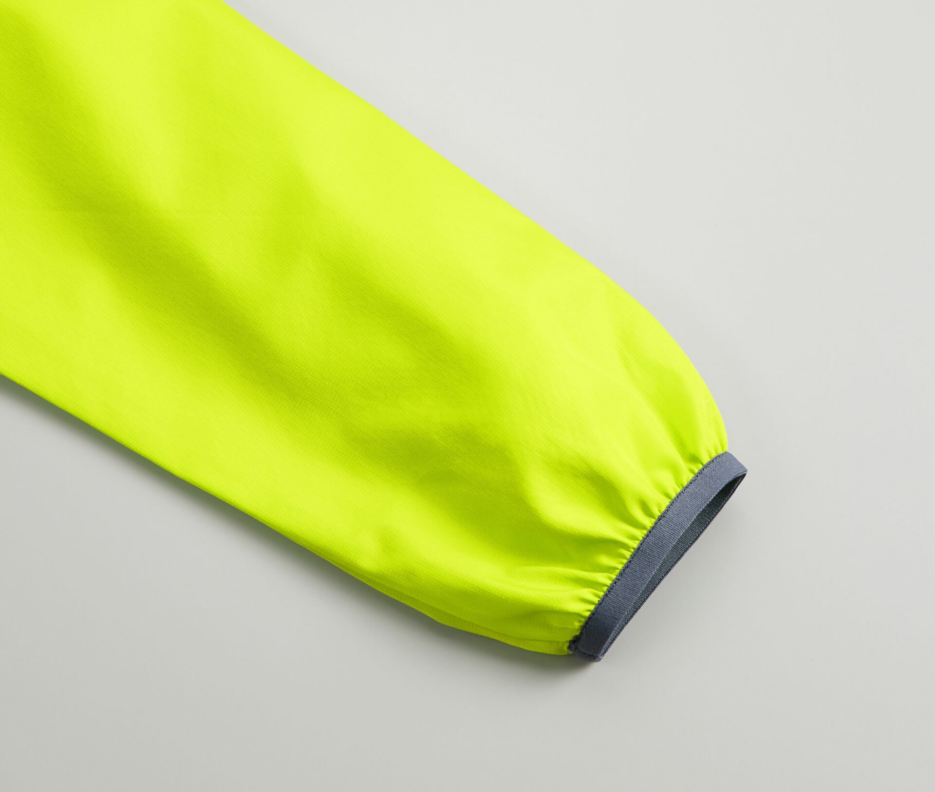 - 袖口は手首にフィットするストレッチテープのパイピング仕様