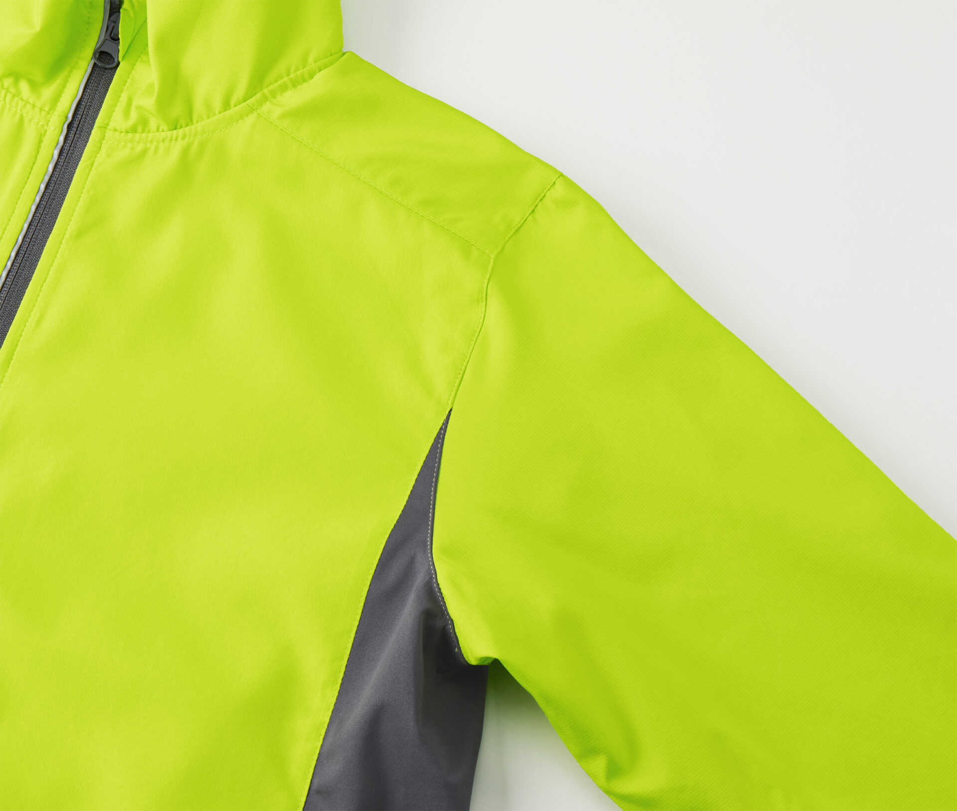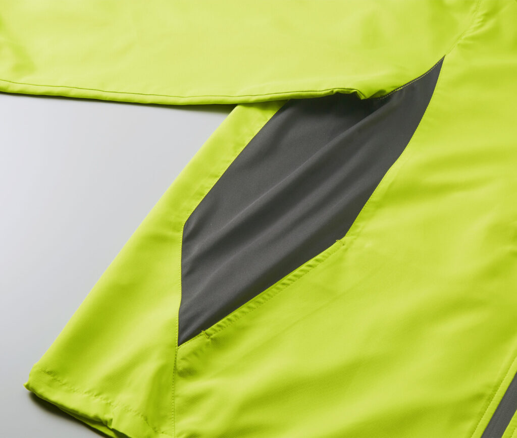 脇下部分はストレッチ生地になっているので腕の動きを妨げません。こすれる音が少ないので、コンサートなど静かなイベントのスタッフジャケットとしてもおすすめ。はっ水・軽量とバランスのとれたジャケットです。
