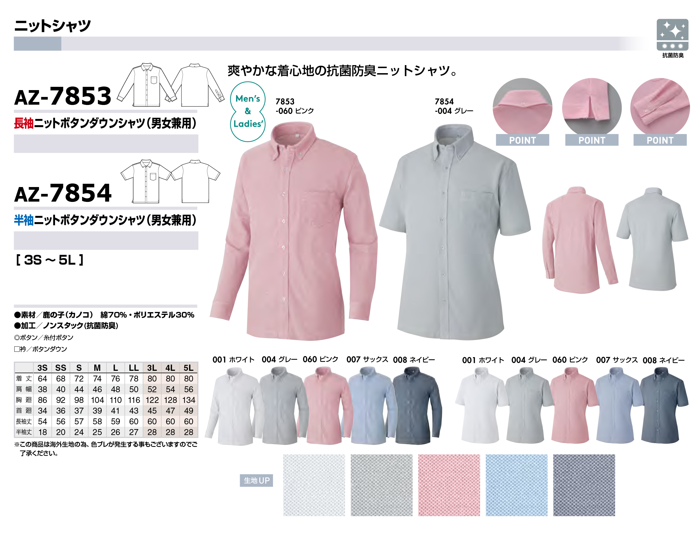 【AZ-7854半袖ニットボタンダウンシャツ(男女兼用)】