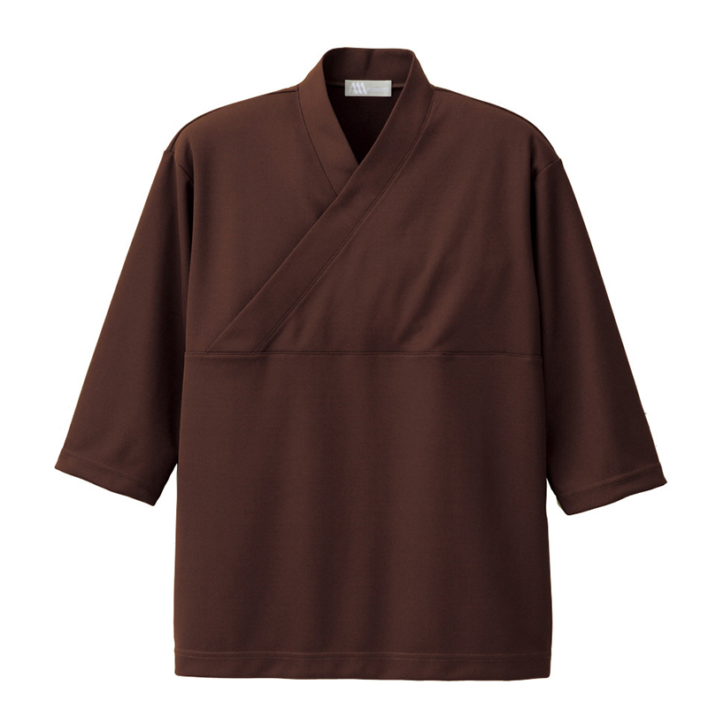 ポロシャツ感覚で着用できる作務衣風ニットシャツ。